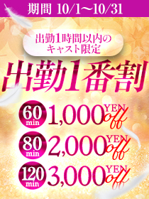 「出勤1番割」の一言で、驚きの割引価格が適用されます!